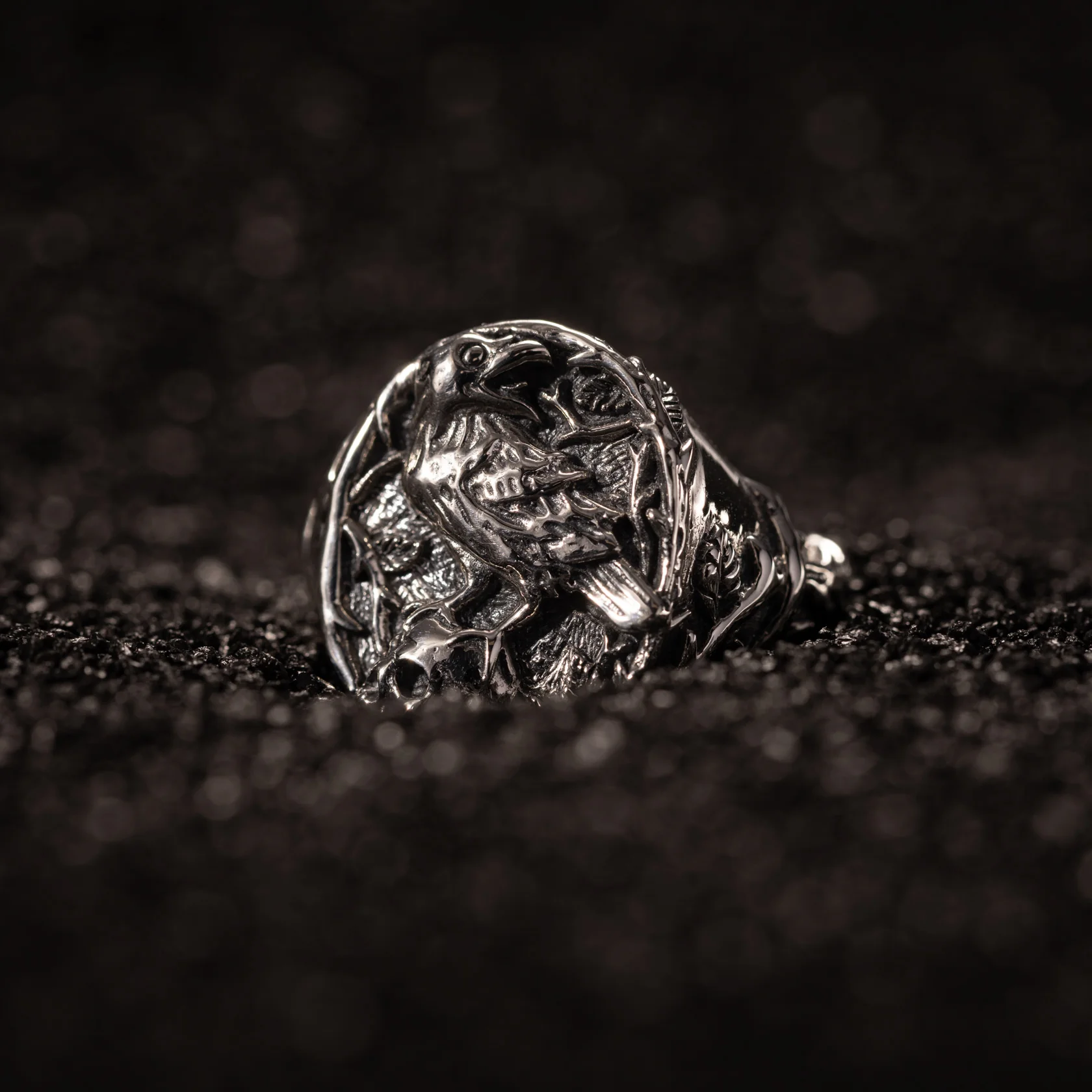 A raven sits in stillness - not flying, not fleeing. Just watching. Waiting. Like the part of us that never forgets. This ring was built for that kind of quiet. Inspired by Poe’s fixation with memory, loss, and everything we try to bury but can’t, its band twists with ivy and thorns, carved in heavy silver like something pulled from the earth. It’s grief made tangible — the kind that lingers in your chest long after the noise is gone.