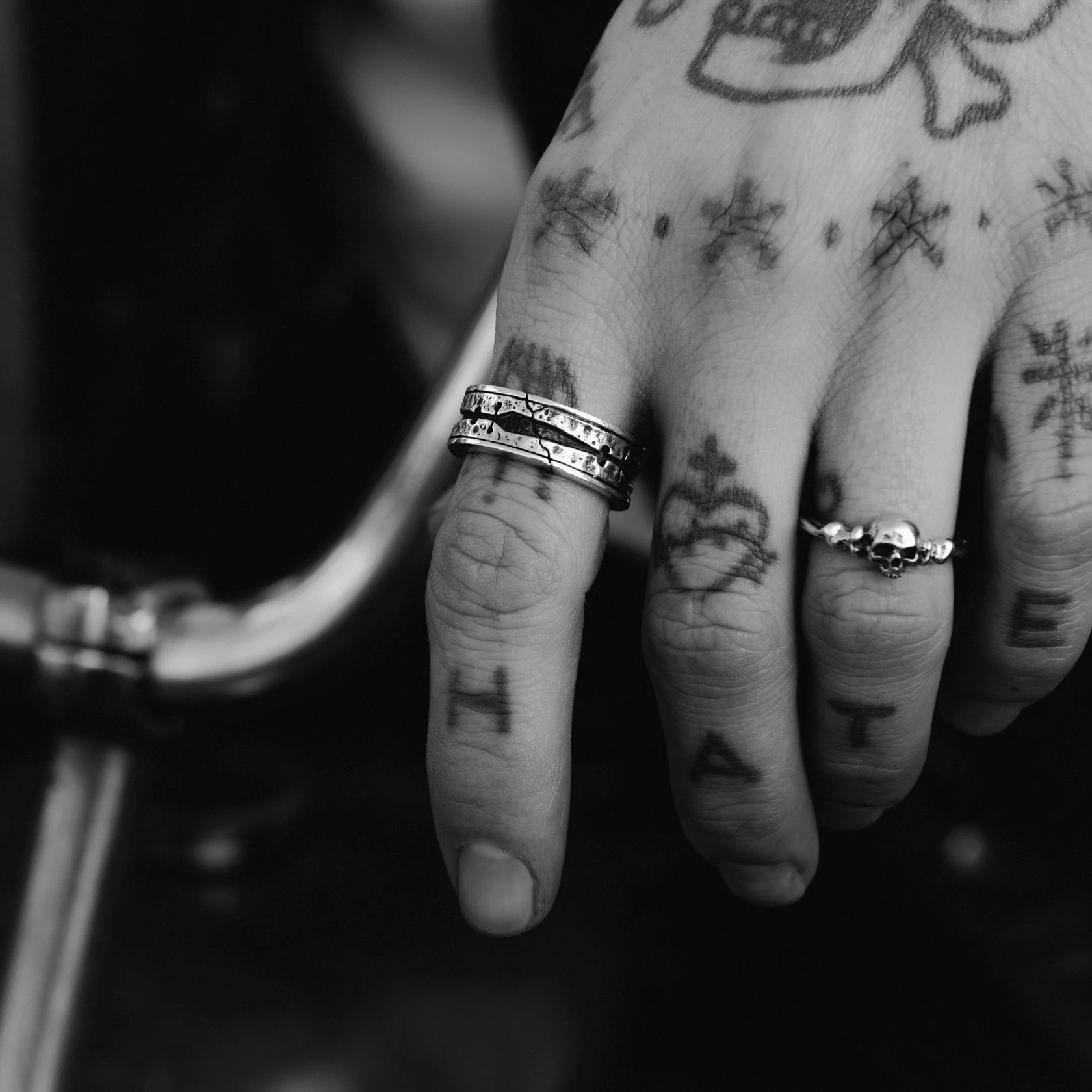 The Til Death ring is a pledge sealed in silver. Engraved with dagger silhouettes, it echoes the fierce, unbreakable connection between two souls. Love is a double-edged sword—strong and true, even when it cuts deep. Pair it with its counterpart or wear it as a silent vow.